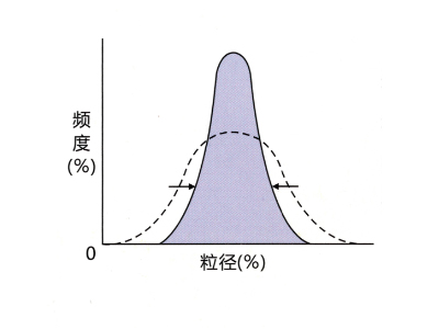![]() 粒度分布 ![]() 相比傳統(tǒng)磨機,即使在相同的平均粒徑,它可以得到集中的粒度分布。 |